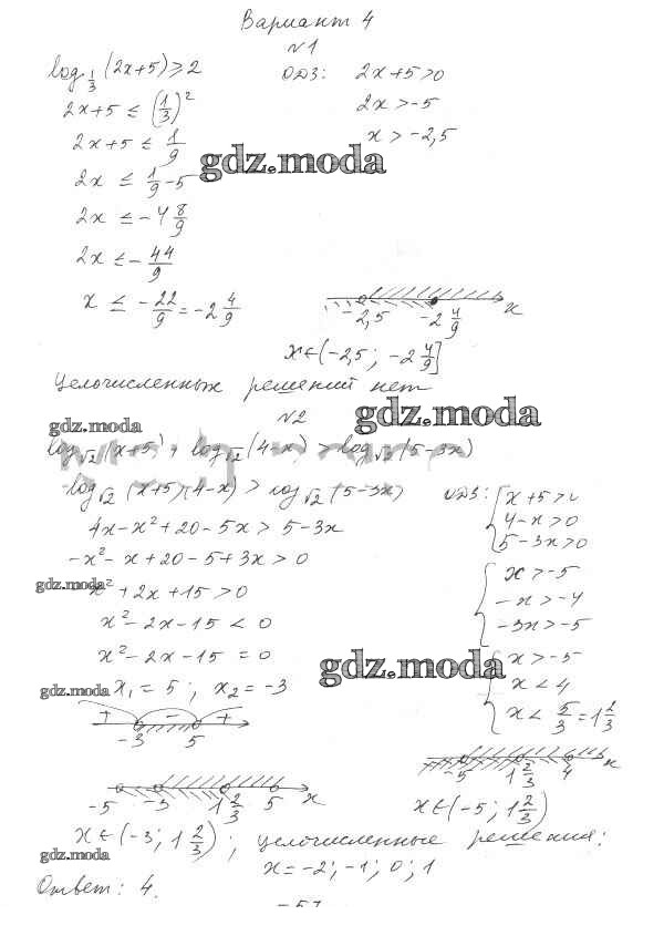 ОТВЕТ на задание № 4 Самостоятельные работы по Алгебре 11 класс Александрова УМК Базовый уровень