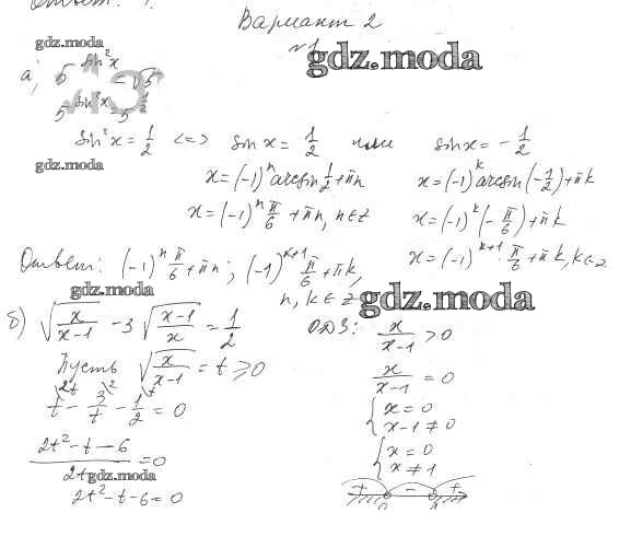 ОТВЕТ на задание № 2 Самостоятельные работы по Алгебре 11 класс Александрова УМК Базовый уровень