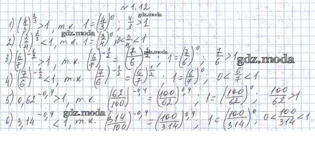ОТВЕТ на задание № 1.12 Учебник по Алгебре 11 класс Мерзляк Алгоритм успеха Базовый и профильный уровни