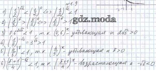 ОТВЕТ на задание № 1.9 Учебник по Алгебре 11 класс Мерзляк Алгоритм успеха Базовый и профильный уровни
