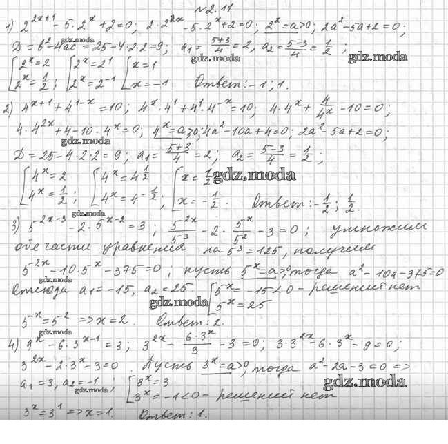 ОТВЕТ на задание № 2.11 Учебник по Алгебре 11 класс Мерзляк Алгоритм успеха Базовый и профильный уровни