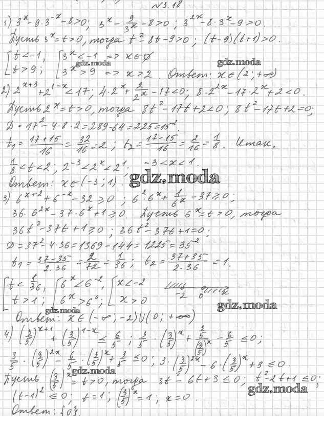 ОТВЕТ на задание № 3.18 Учебник по Алгебре 11 класс Мерзляк Алгоритм успеха Базовый и профильный уровни