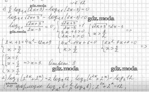 ОТВЕТ на задание № 6.12 Учебник по Алгебре 11 класс Мерзляк Алгоритм успеха Базовый и профильный уровни