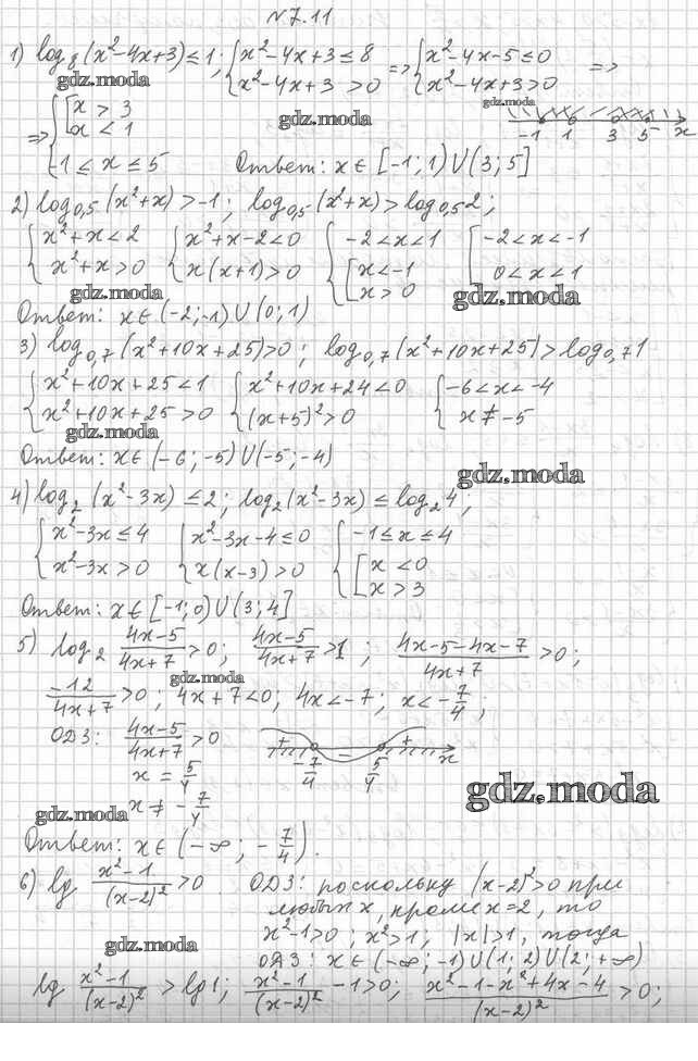 ОТВЕТ на задание № 7.11 Учебник по Алгебре 11 класс Мерзляк Алгоритм успеха Базовый и профильный уровни