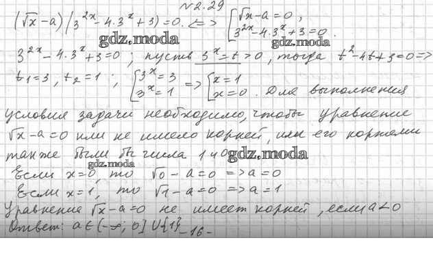 ОТВЕТ на задание № 2.29 Учебник по Алгебре 11 класс Мерзляк Алгоритм успеха Углубленный уровень