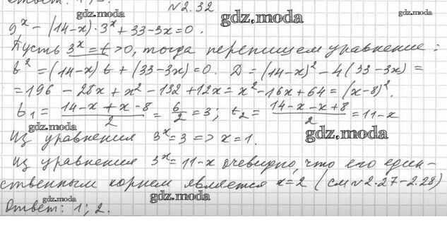 ОТВЕТ на задание № 2.32 Учебник по Алгебре 11 класс Мерзляк Алгоритм успеха Углубленный уровень