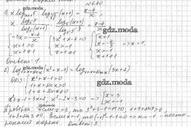 ОТВЕТ на задание № 6.40 Учебник по Алгебре 11 класс Мерзляк Алгоритм успеха Углубленный уровень