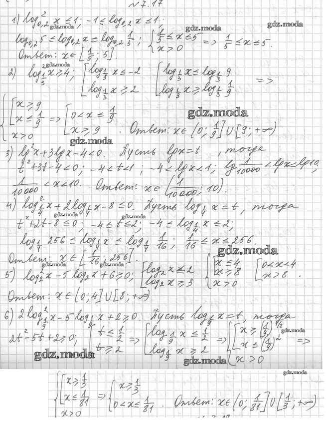 ОТВЕТ на задание № 7.17 Учебник по Алгебре 11 класс Мерзляк Алгоритм успеха Углубленный уровень