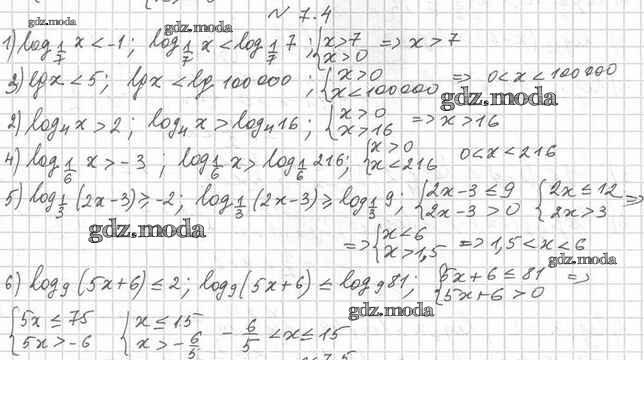 ОТВЕТ на задание № 7.4 Учебник по Алгебре 11 класс Мерзляк Алгоритм успеха Углубленный уровень