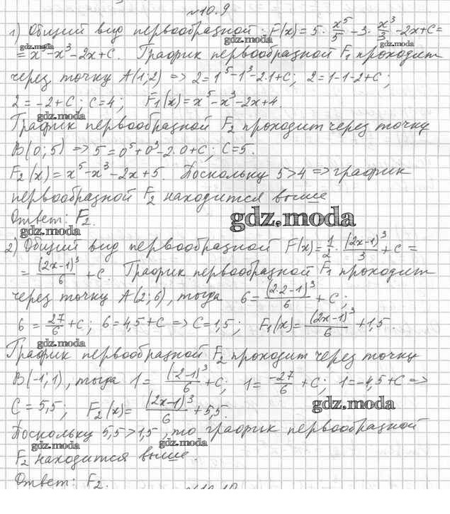 ОТВЕТ на задание № 10.9 Учебник по Алгебре 11 класс Мерзляк Алгоритм успеха Углубленный уровень