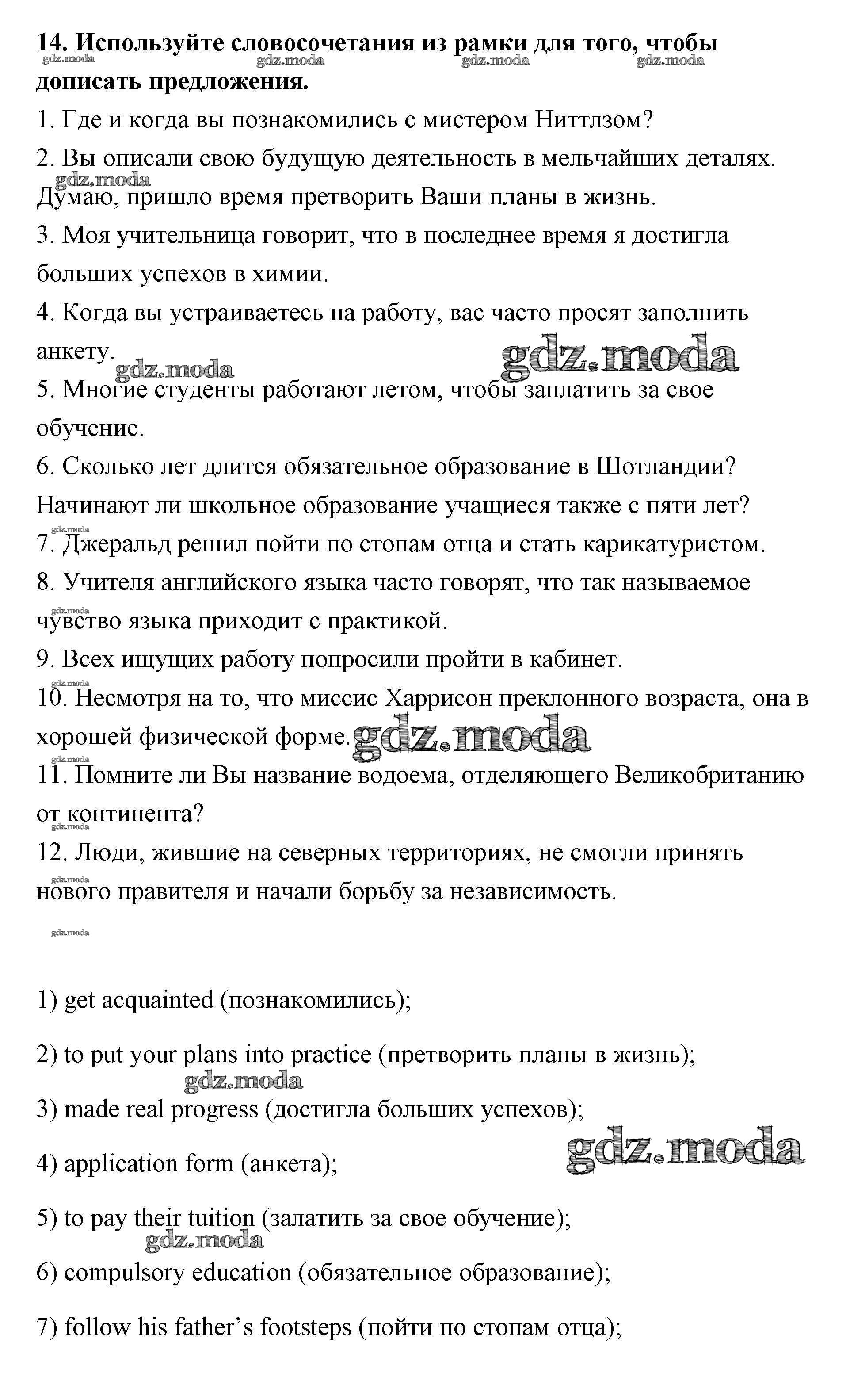 ГДЗ решение к заданию № 14 Английский язык 11 класс рабочая тетрадь Афанасьева Rainbow Дрофа 2016 Базовый уровень ФГОС бесплатно на гдз.мода!