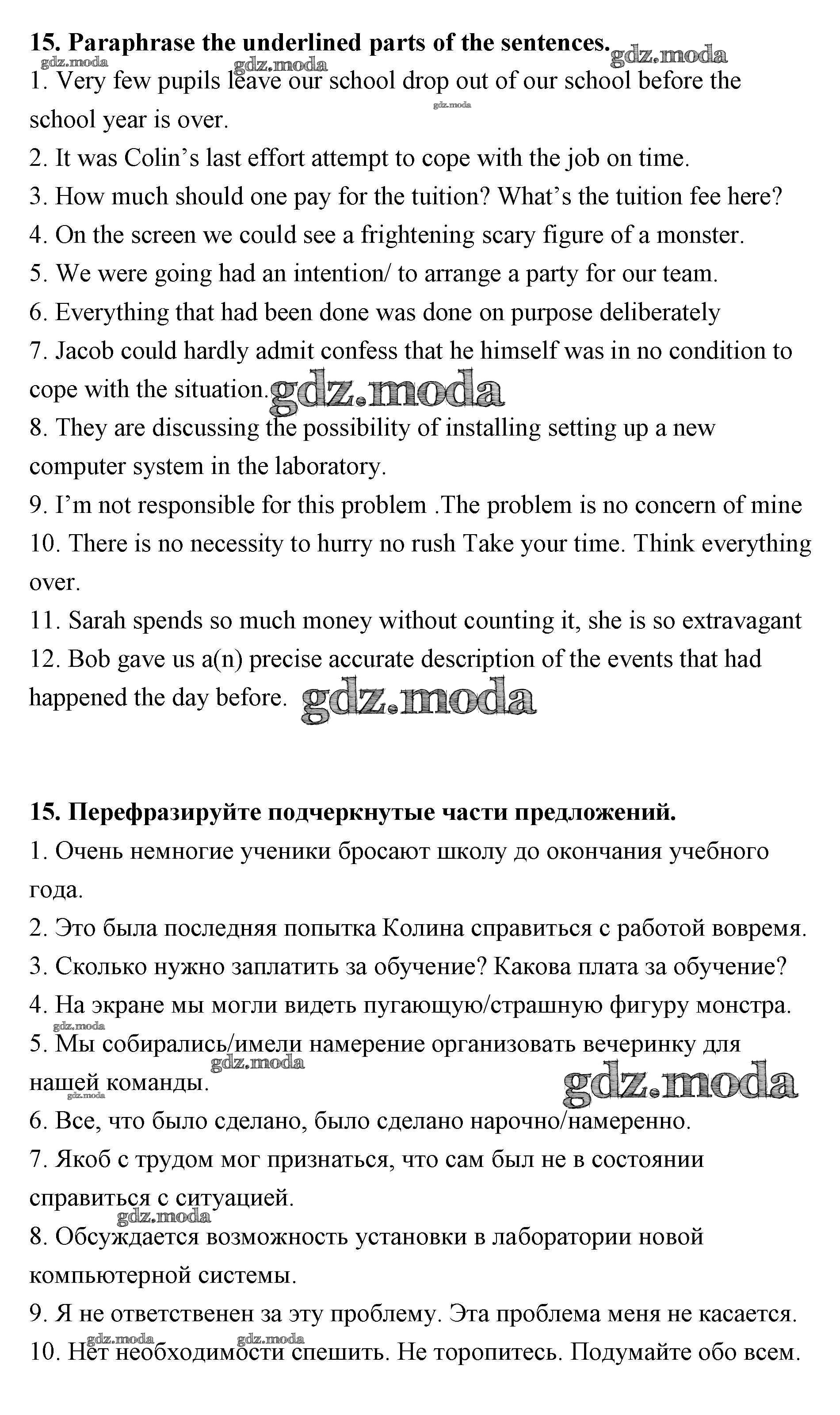 ГДЗ решение к заданию № 15 Английский язык 11 класс рабочая тетрадь Афанасьева Rainbow Дрофа 2016 Базовый уровень ФГОС бесплатно на гдз.мода!