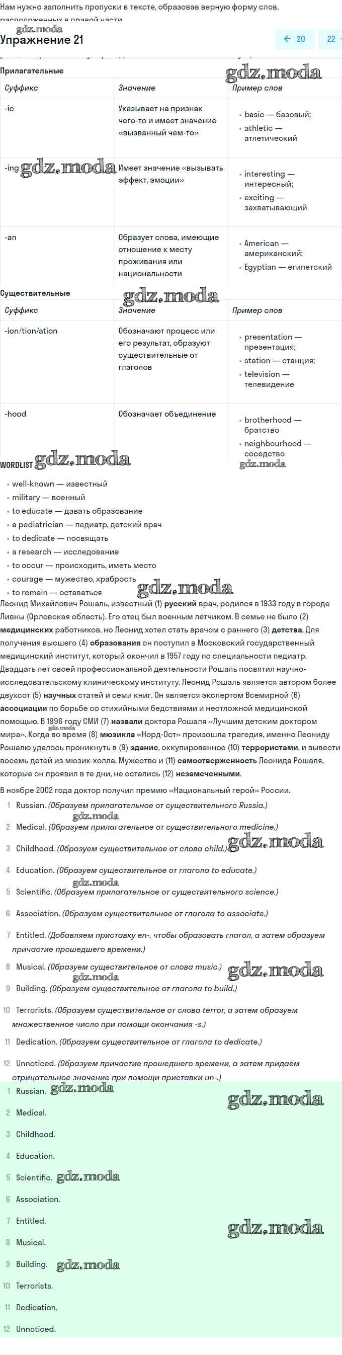 ГДЗ решение к заданию № 21 Английский язык 11 класс рабочая тетрадь Афанасьева Rainbow Дрофа 2016 Базовый уровень ФГОС бесплатно на гдз.мода!