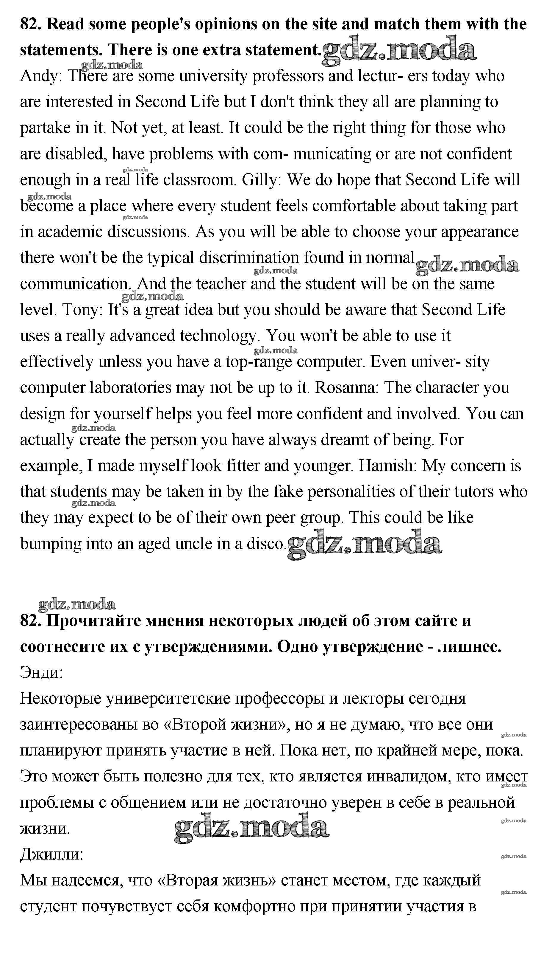 ОТВЕТ на задание № 82 Учебник по Английскому языку 11 класс Биболетова Enjoy English