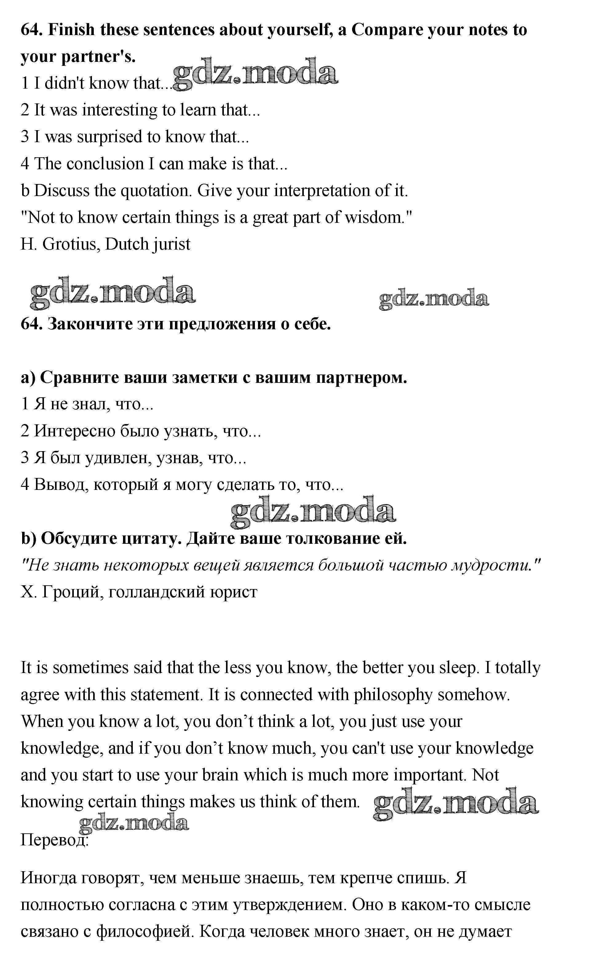 ОТВЕТ на задание № 64 Учебник по Английскому языку 11 класс Биболетова Enjoy English
