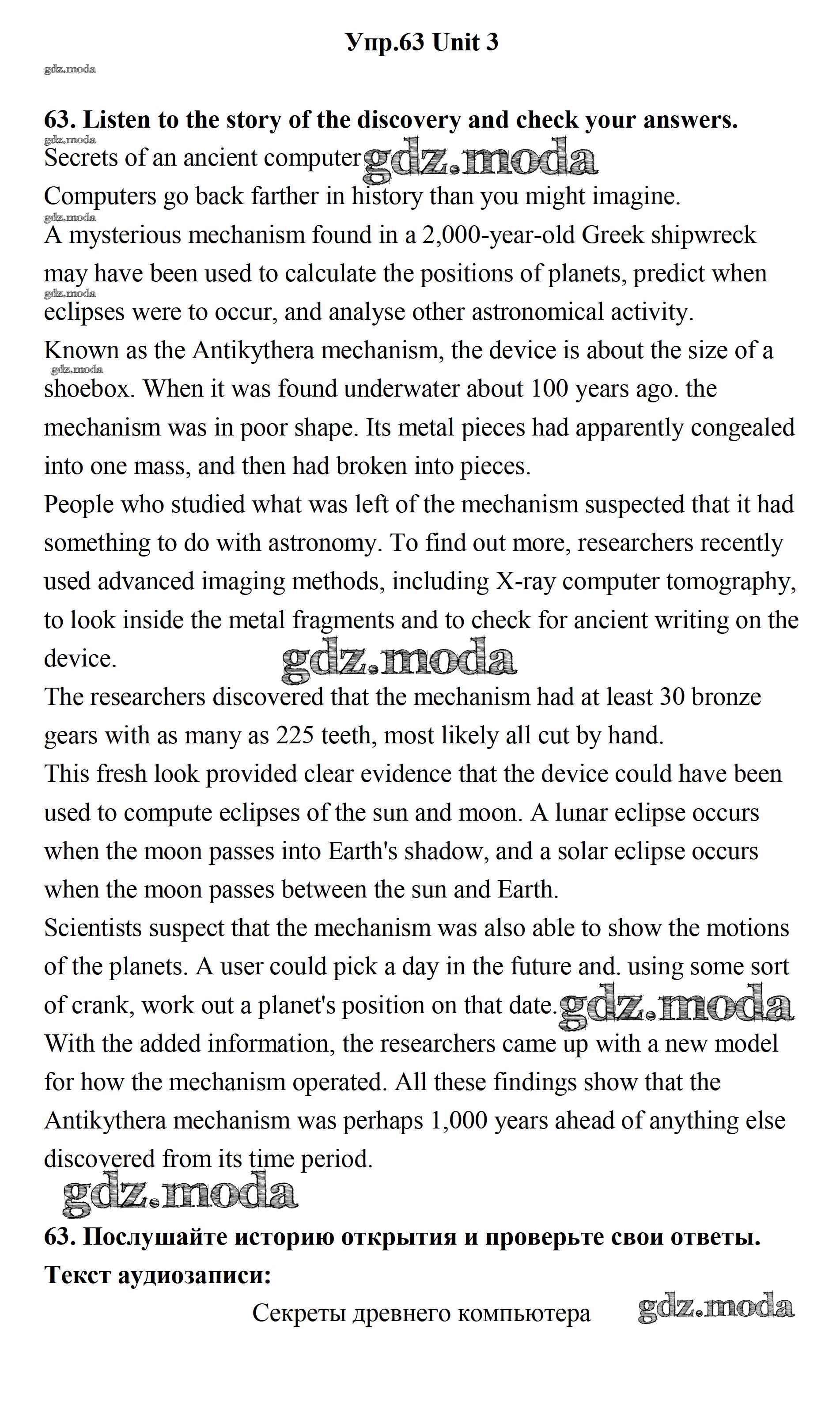 ОТВЕТ на задание № 63 Учебник по Английскому языку 11 класс Биболетова Enjoy English