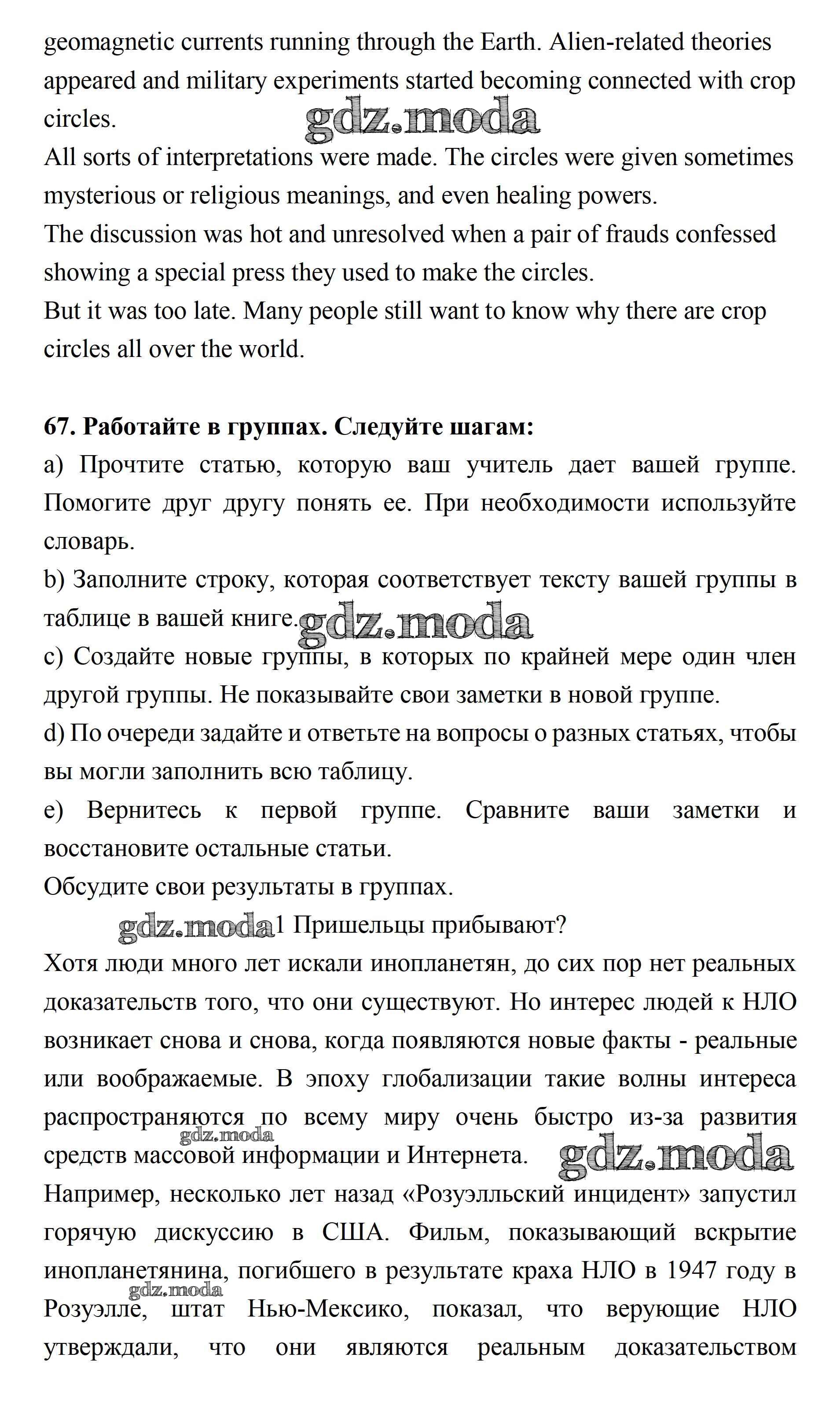 ОТВЕТ на задание № 67 Учебник по Английскому языку 11 класс Биболетова Enjoy English