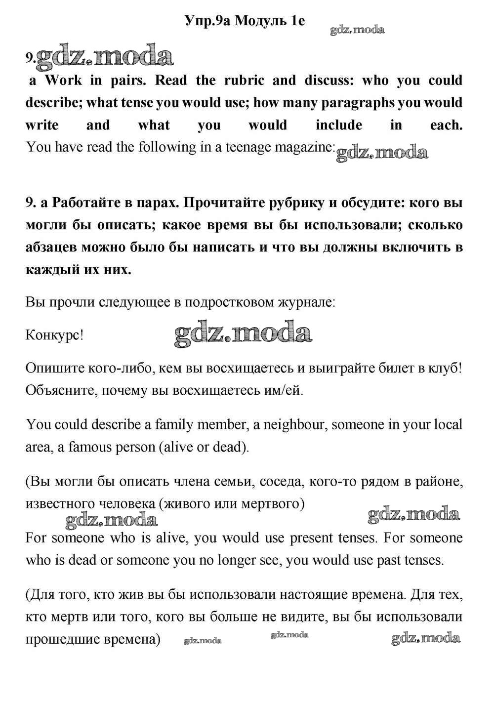 ОТВЕТ на задание № 9a Учебник по Английскому языку 11 класс Эванс Spotlight