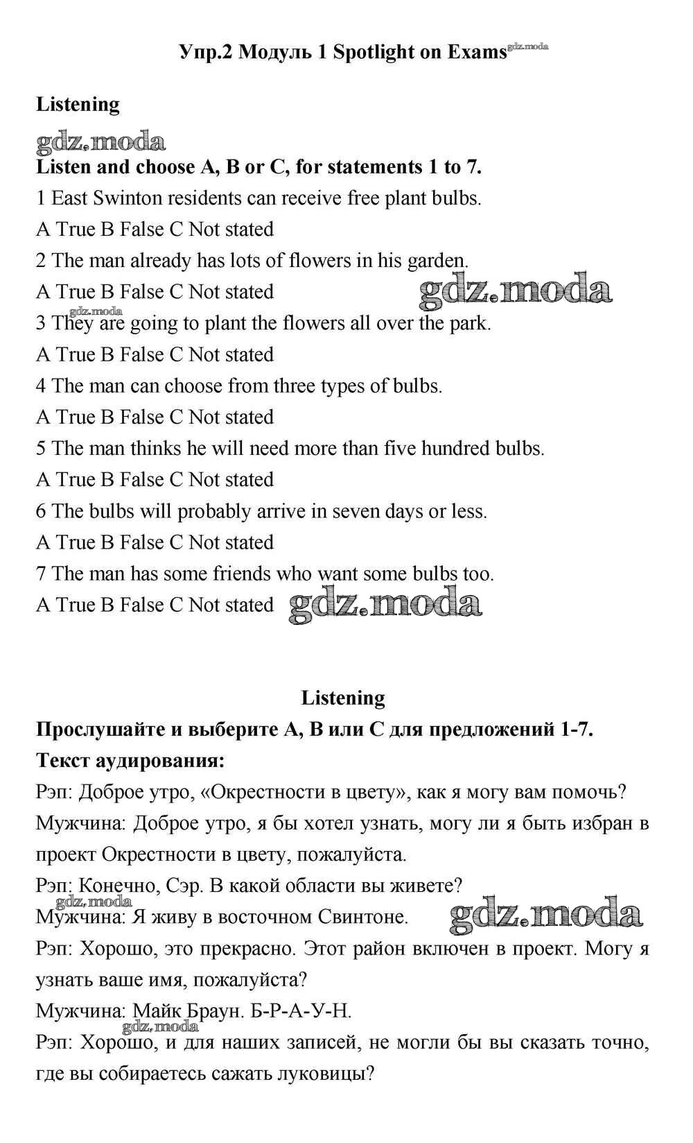 ОТВЕТ на задание № 2 Учебник по Английскому языку 11 класс Эванс Spotlight