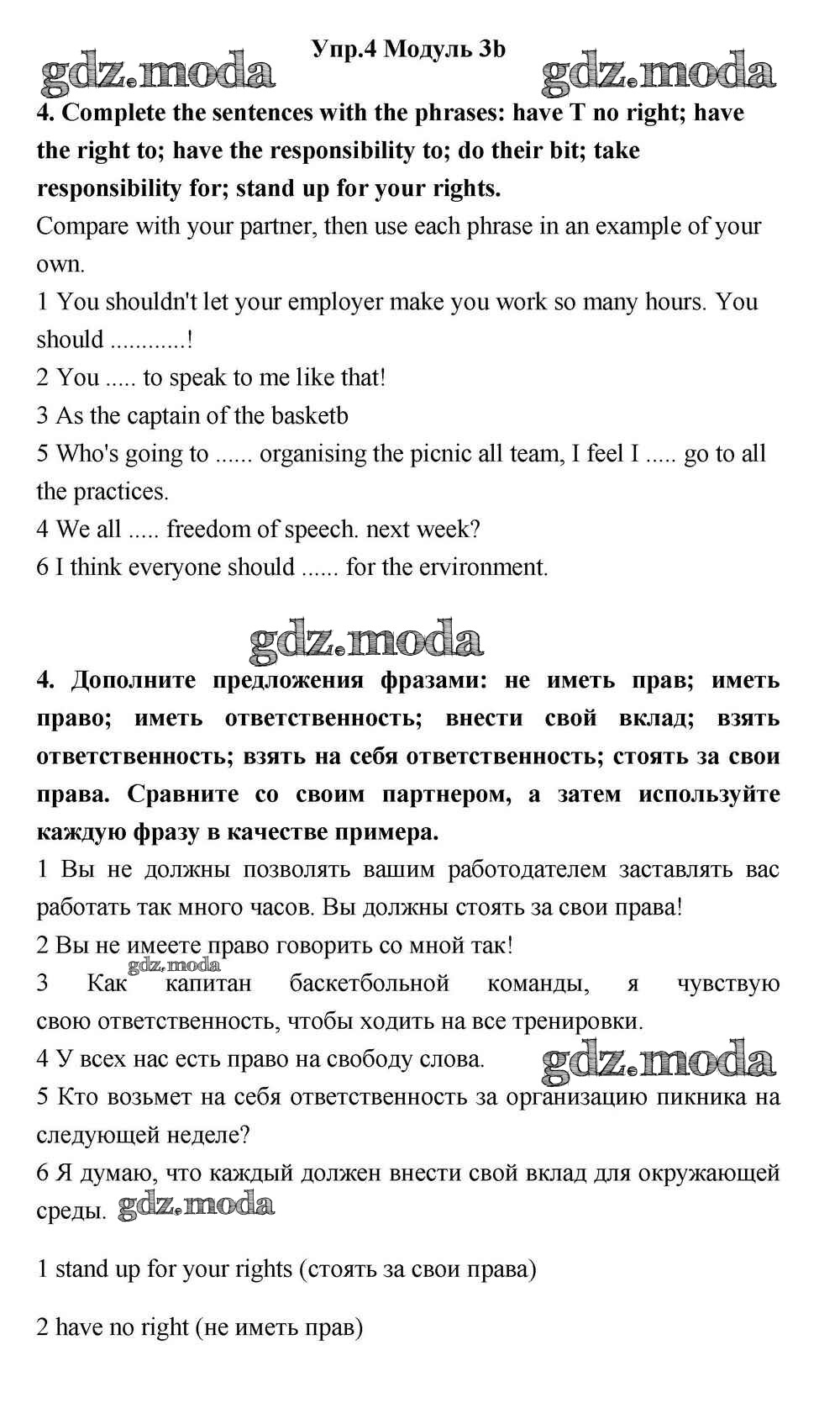 ГДЗ решение к заданию № 4 Английский язык 11 класс Эванс Spotlight Просвещение 2015 ФГОС бесплатно на гдз.мода!