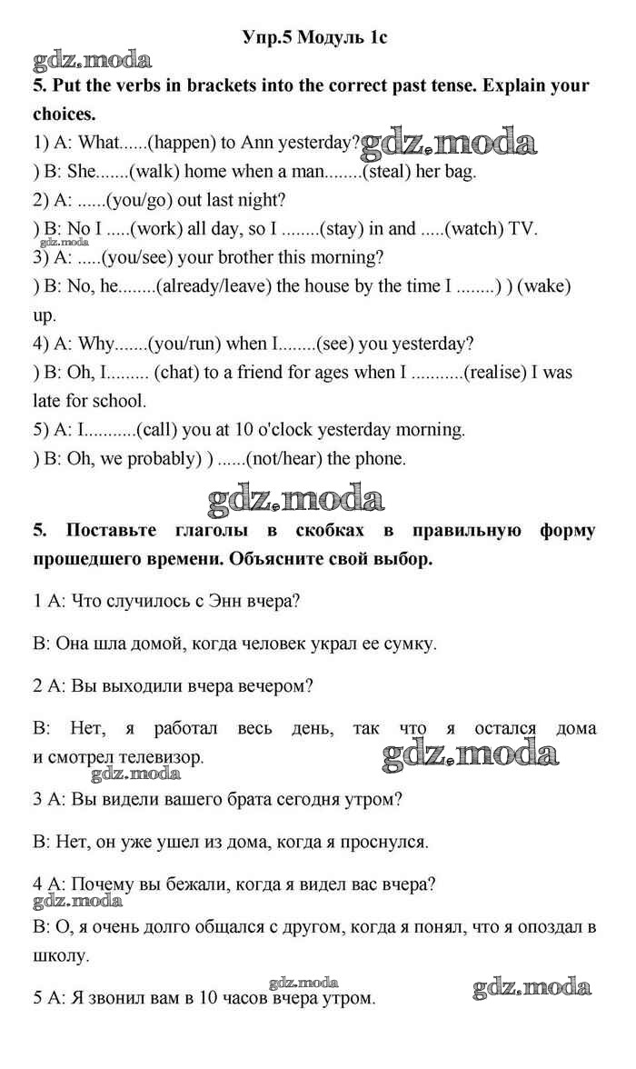 ОТВЕТ на задание № 5 Учебник по Английскому языку 11 класс Эванс Spotlight