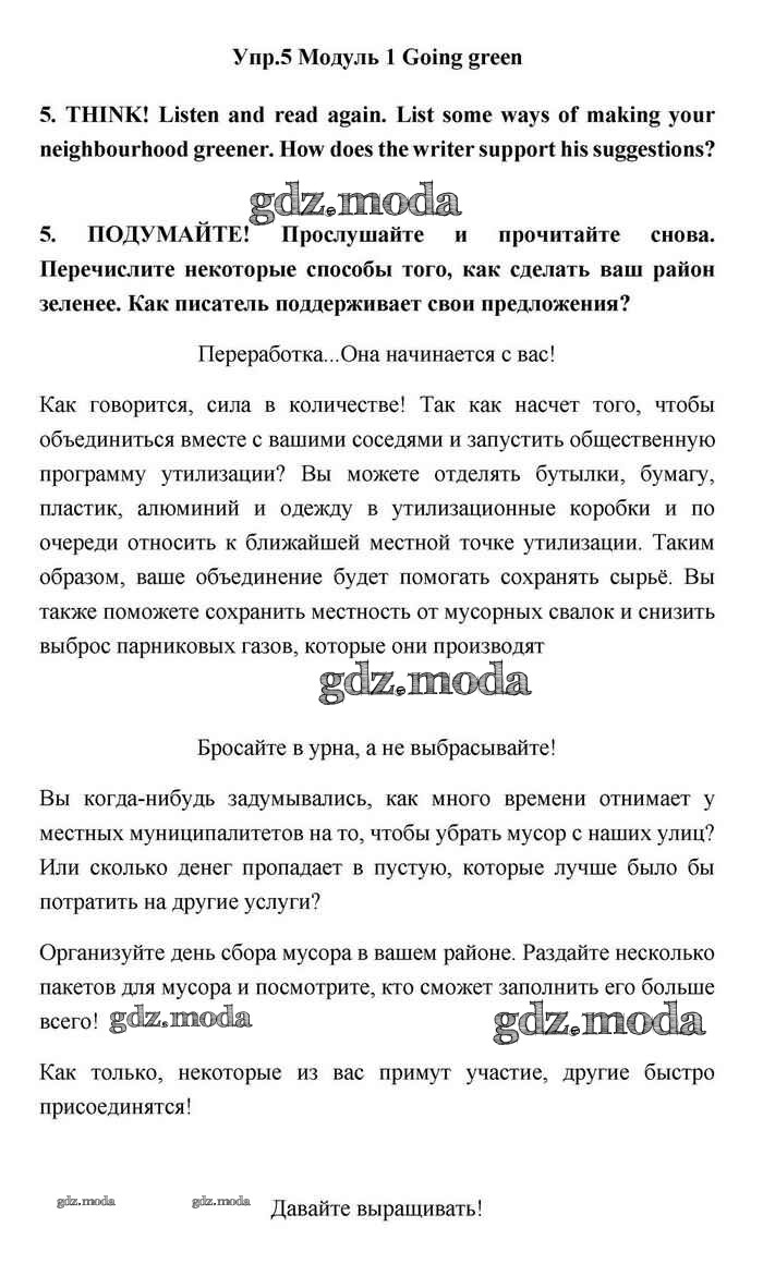 ОТВЕТ на задание № 5 Учебник по Английскому языку 11 класс Эванс Spotlight