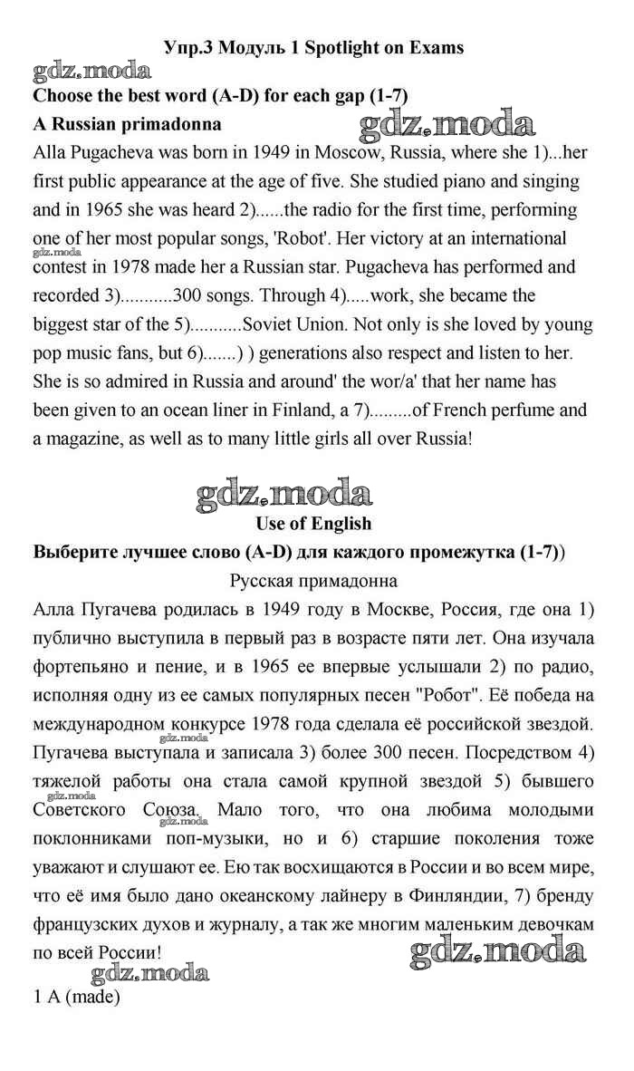 ОТВЕТ на задание № Use of English Учебник по Английскому языку 11 класс Эванс Spotlight
