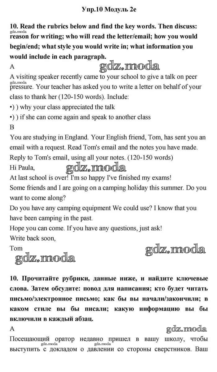 ОТВЕТ на задание № 10 Учебник по Английскому языку 11 класс Эванс Spotlight