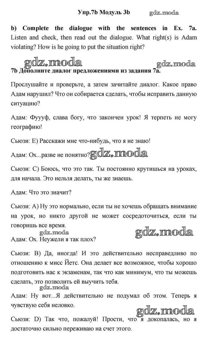 ОТВЕТ на задание № 7 Учебник по Английскому языку 11 класс Эванс Spotlight