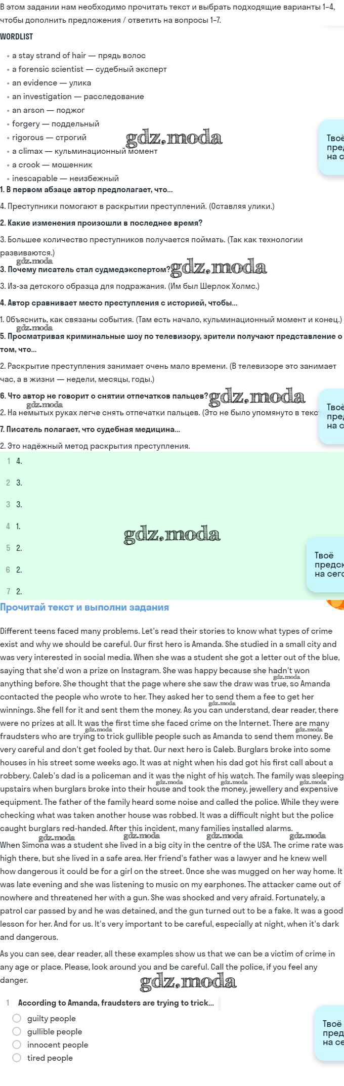 ОТВЕТ на задание № Reading Учебник по Английскому языку 11 класс Эванс Spotlight