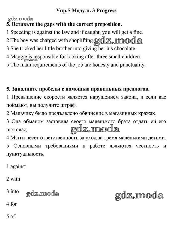 ОТВЕТ на задание № 5 Учебник по Английскому языку 11 класс Эванс Spotlight