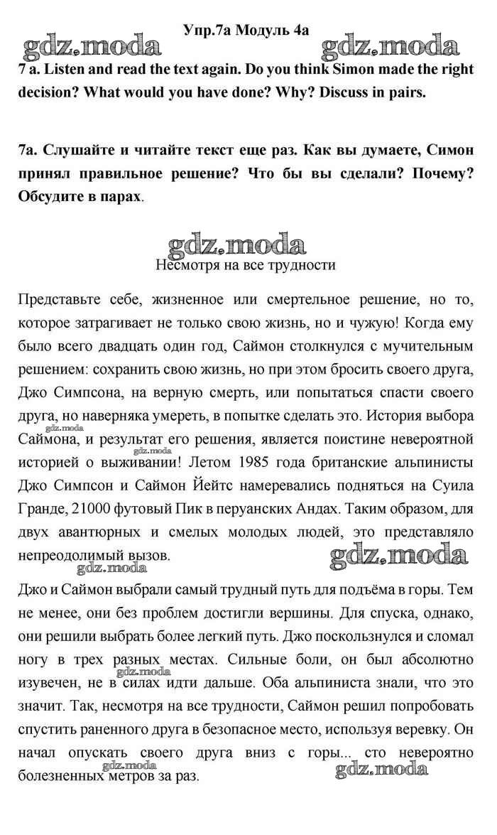ОТВЕТ на задание № 7 Учебник по Английскому языку 11 класс Эванс Spotlight