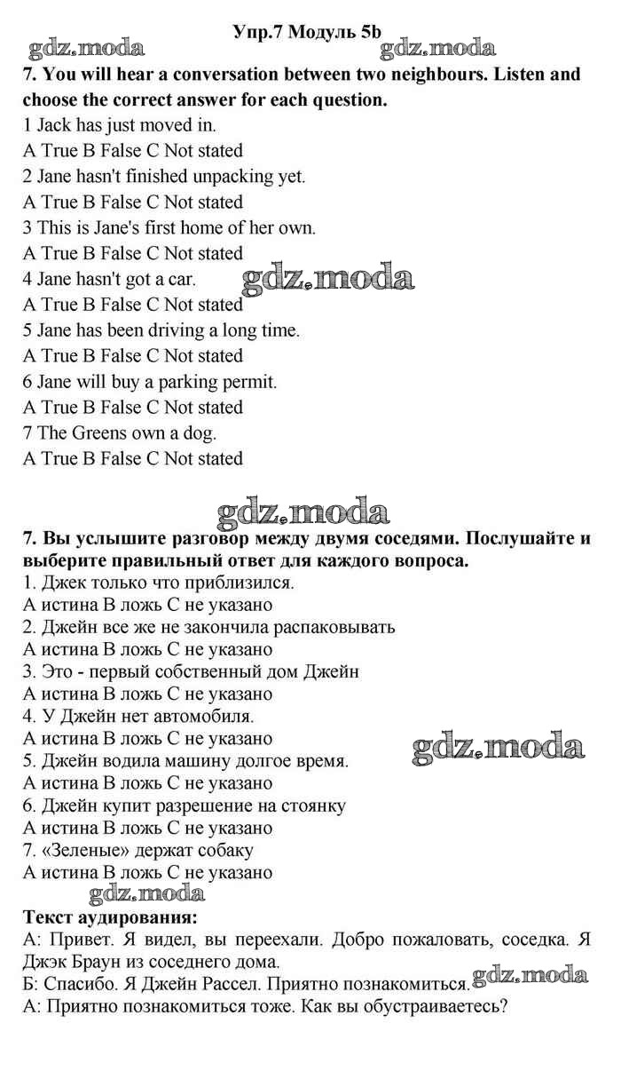 ОТВЕТ на задание № 7 Учебник по Английскому языку 11 класс Эванс Spotlight