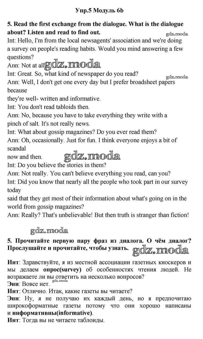 ОТВЕТ на задание № 5 Учебник по Английскому языку 11 класс Эванс Spotlight
