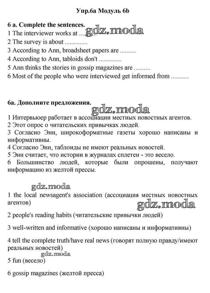 ОТВЕТ на задание № 6 Учебник по Английскому языку 11 класс Эванс Spotlight