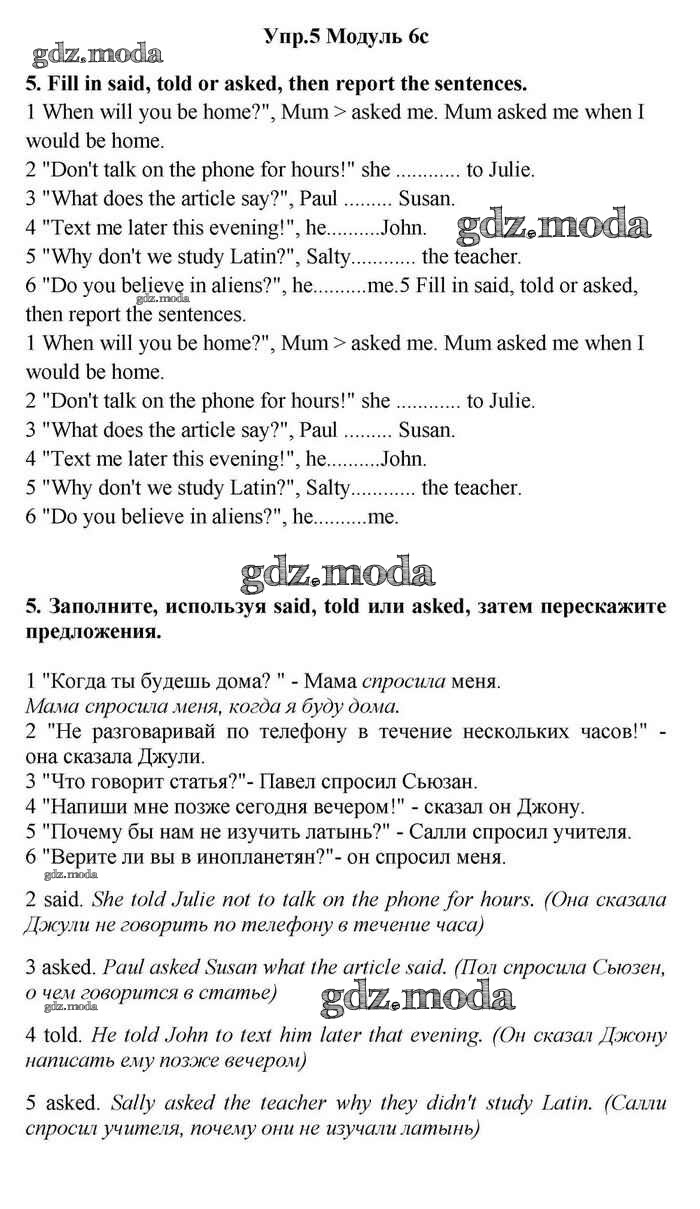 ОТВЕТ на задание № 5 Учебник по Английскому языку 11 класс Эванс Spotlight