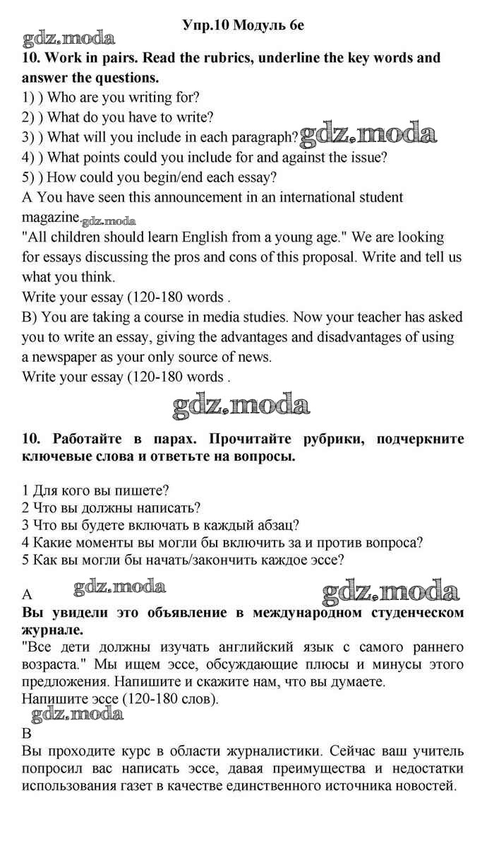 ОТВЕТ на задание № 10 Учебник по Английскому языку 11 класс Эванс Spotlight