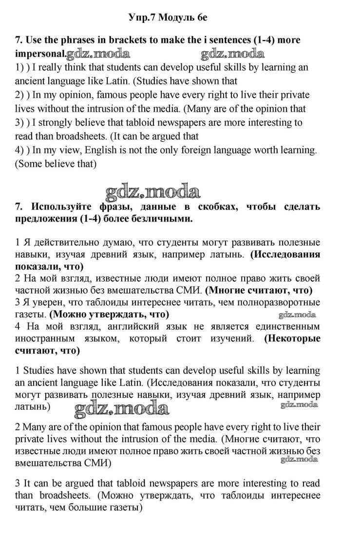 ОТВЕТ на задание № 7 Учебник по Английскому языку 11 класс Эванс Spotlight