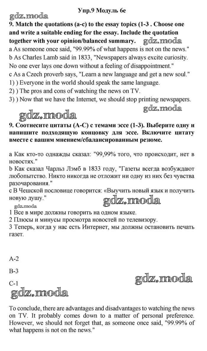ОТВЕТ на задание № 9 Учебник по Английскому языку 11 класс Эванс Spotlight