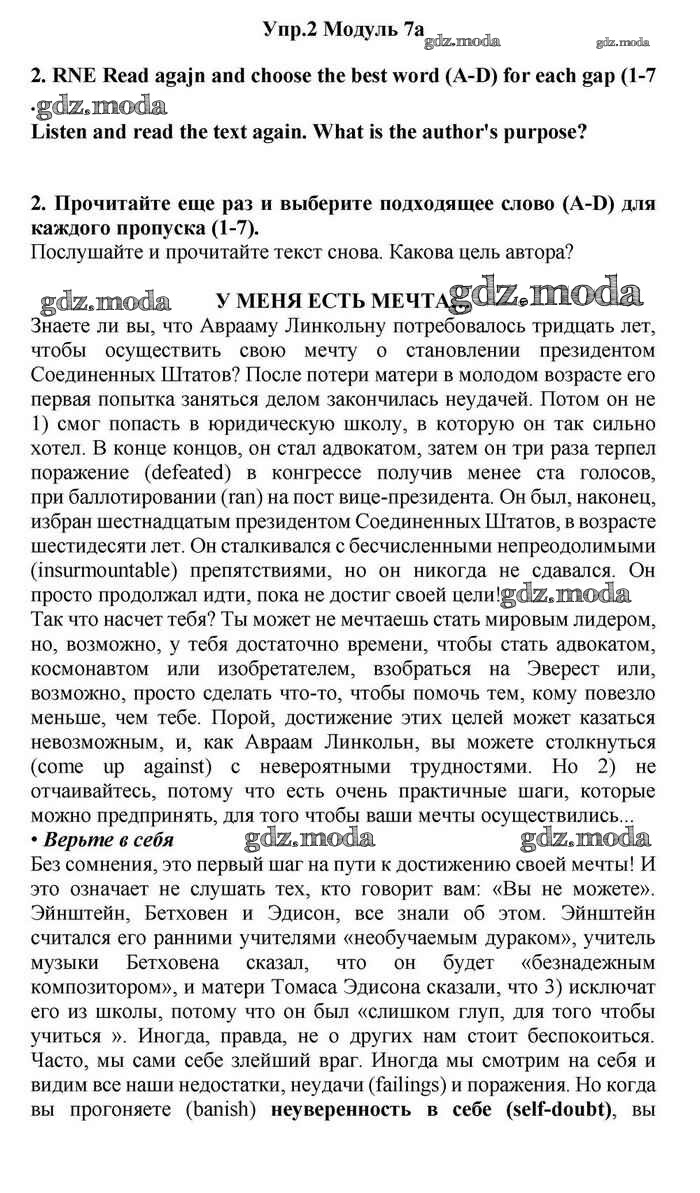 ОТВЕТ на задание № 2 Учебник по Английскому языку 11 класс Эванс Spotlight