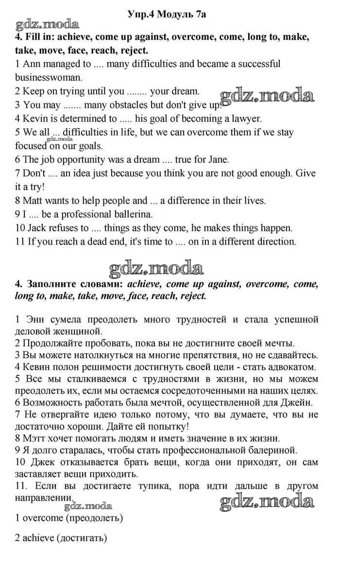 ОТВЕТ на задание № 4 Учебник по Английскому языку 11 класс Эванс Spotlight