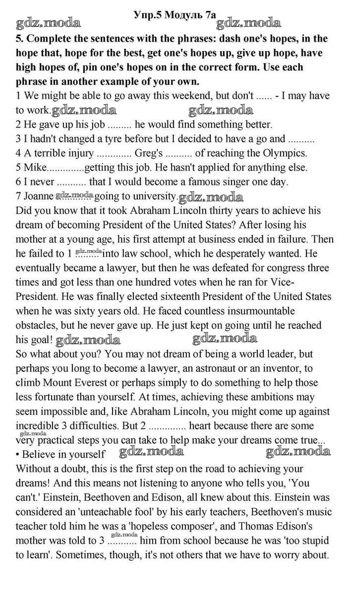 ОТВЕТ на задание № 5 Учебник по Английскому языку 11 класс Эванс Spotlight