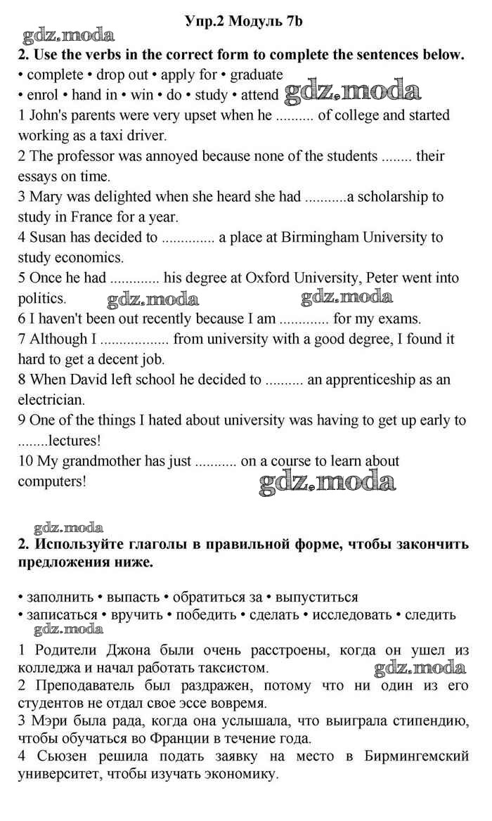 ОТВЕТ на задание № 2 Учебник по Английскому языку 11 класс Эванс Spotlight