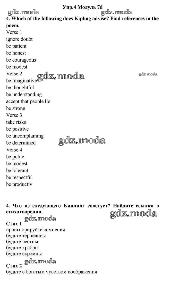 ОТВЕТ на задание № 4 Учебник по Английскому языку 11 класс Эванс Spotlight
