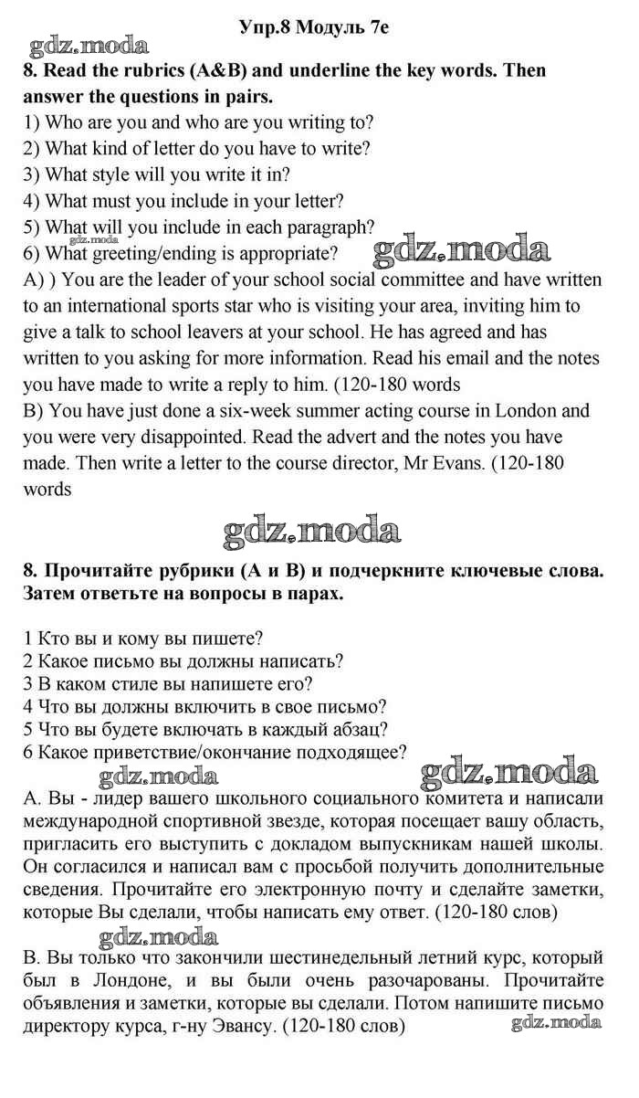 ОТВЕТ на задание № 8 Учебник по Английскому языку 11 класс Эванс Spotlight