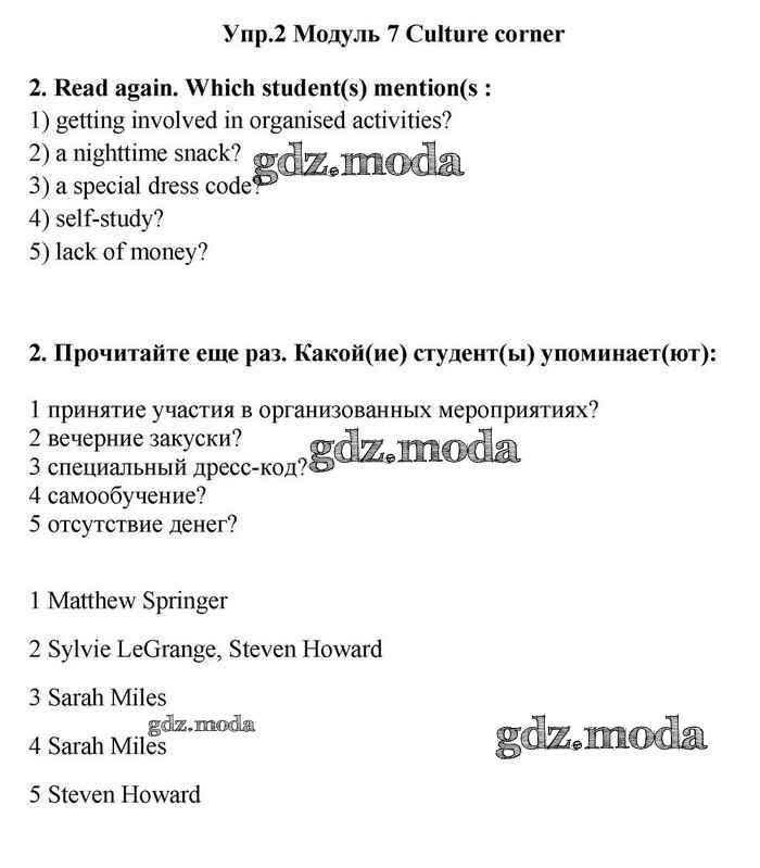 ОТВЕТ на задание № 2 Учебник по Английскому языку 11 класс Эванс Spotlight