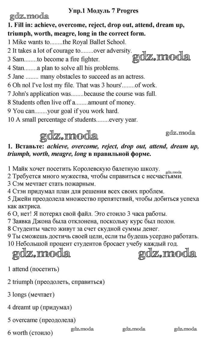 ОТВЕТ на задание № 1 Учебник по Английскому языку 11 класс Эванс Spotlight