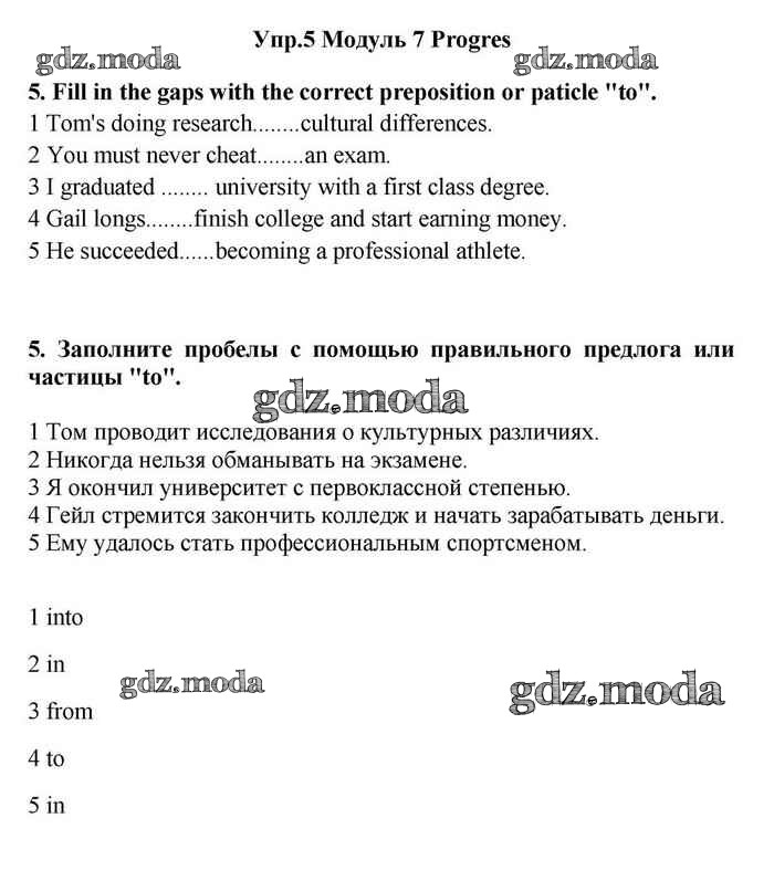 ОТВЕТ на задание № 5 Учебник по Английскому языку 11 класс Эванс Spotlight