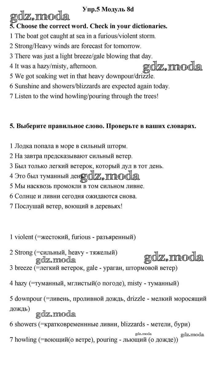 ОТВЕТ на задание № 5 Учебник по Английскому языку 11 класс Эванс Spotlight