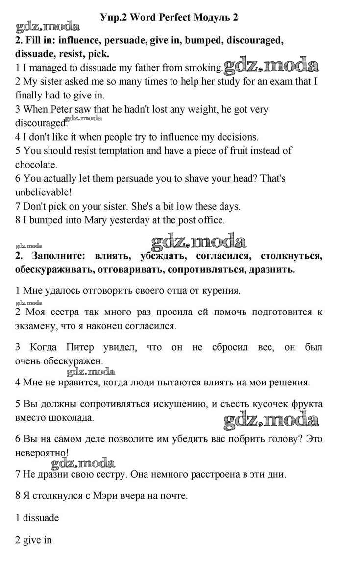 ОТВЕТ на задание № 2 Учебник по Английскому языку 11 класс Эванс Spotlight
